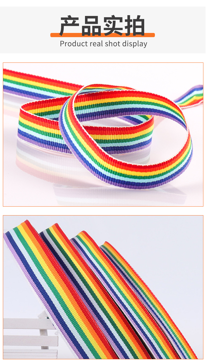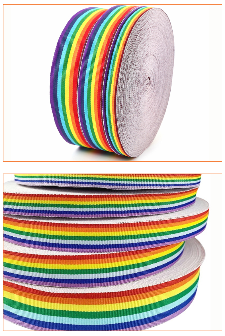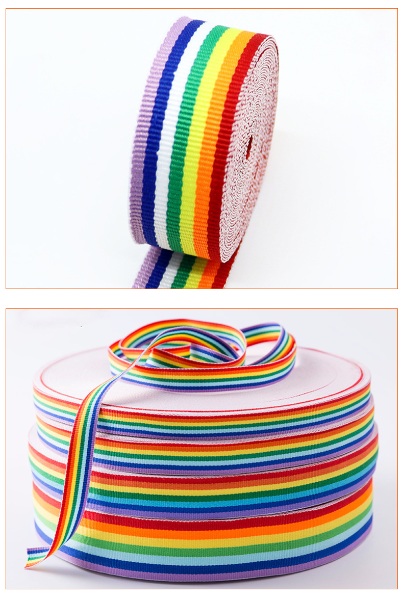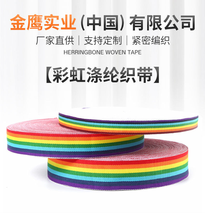 厂家批发2.5cm彩虹织带 彩色涤纶提花织带 服饰箱包包边带