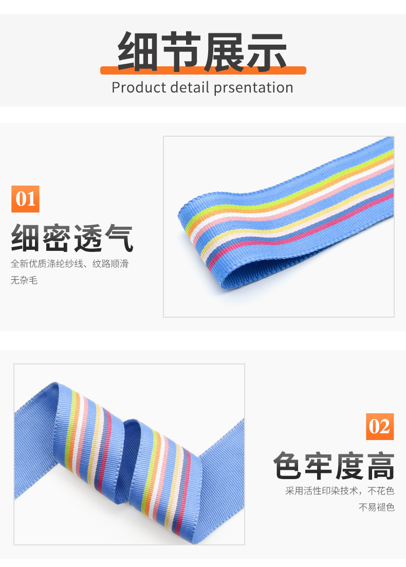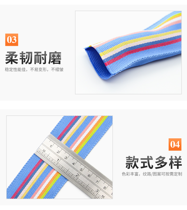 4.5cm七彩涤纶间色织带 彩虹提花带包边带 箱包肩带宠物绳手提带