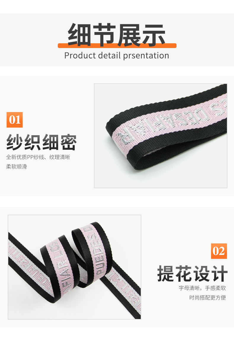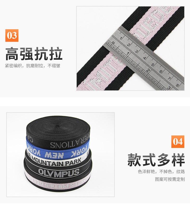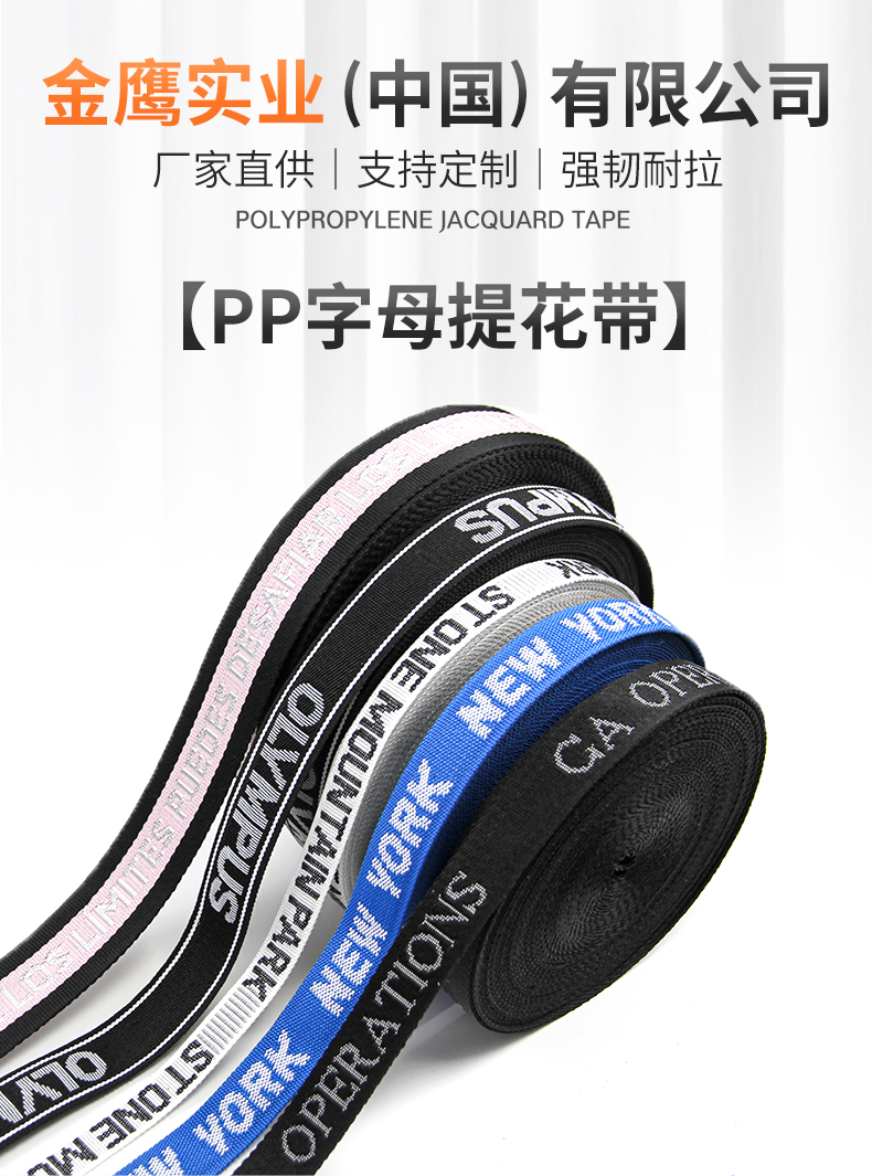 丙纶PP织带 间色斜纹背包带肩带腰带宠物带 logo字母提花织带