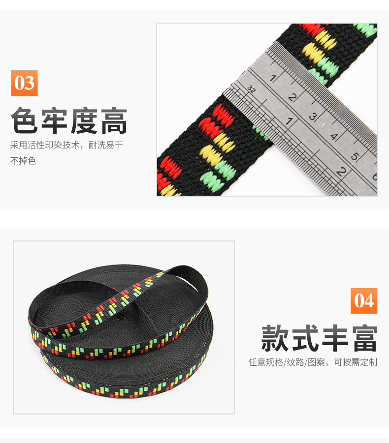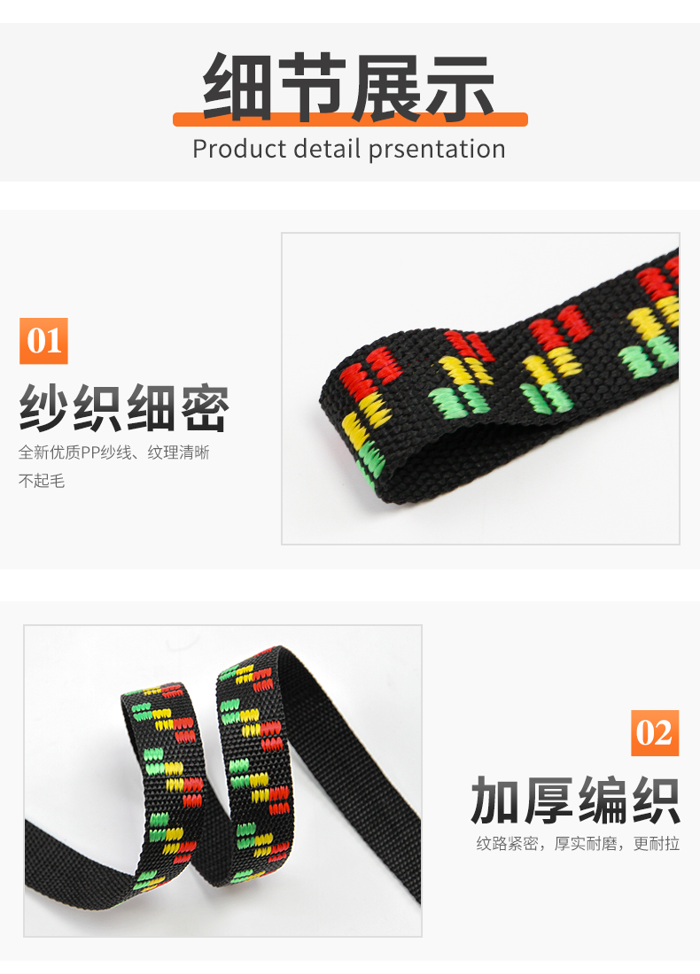 25mm彩色PP间色织带 丙纶pp提花带箱包书包织带 背包手提绳