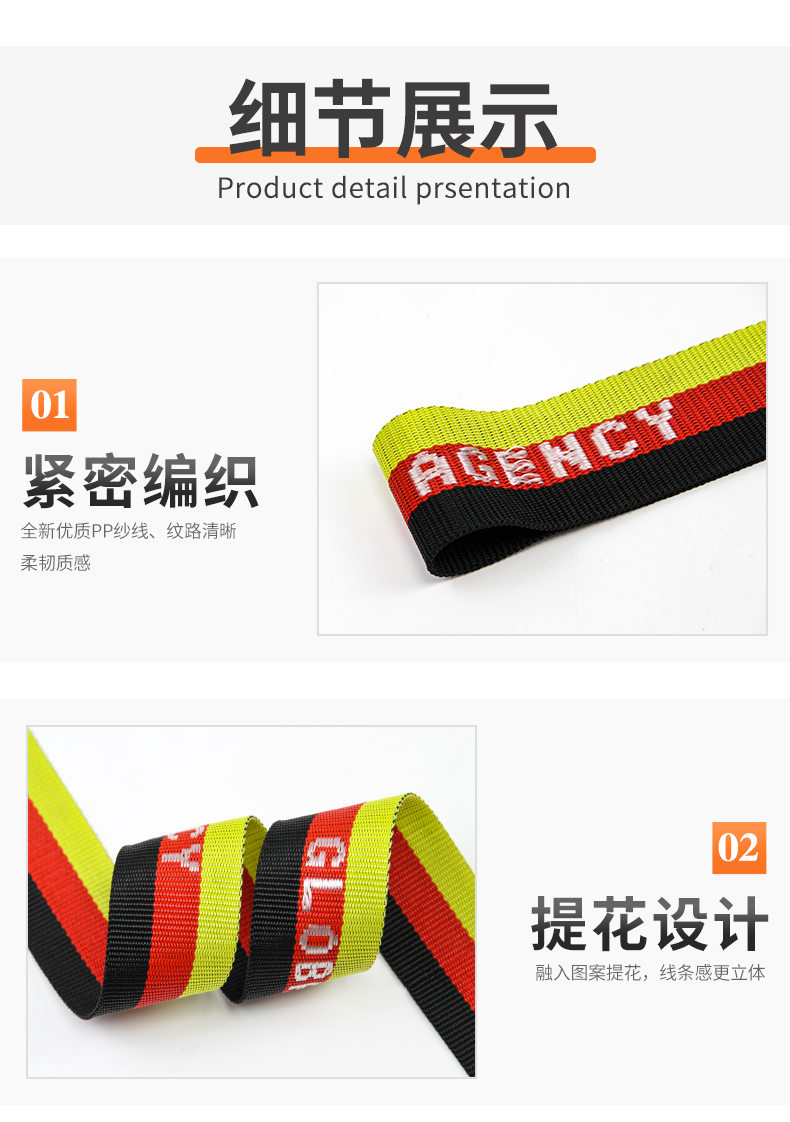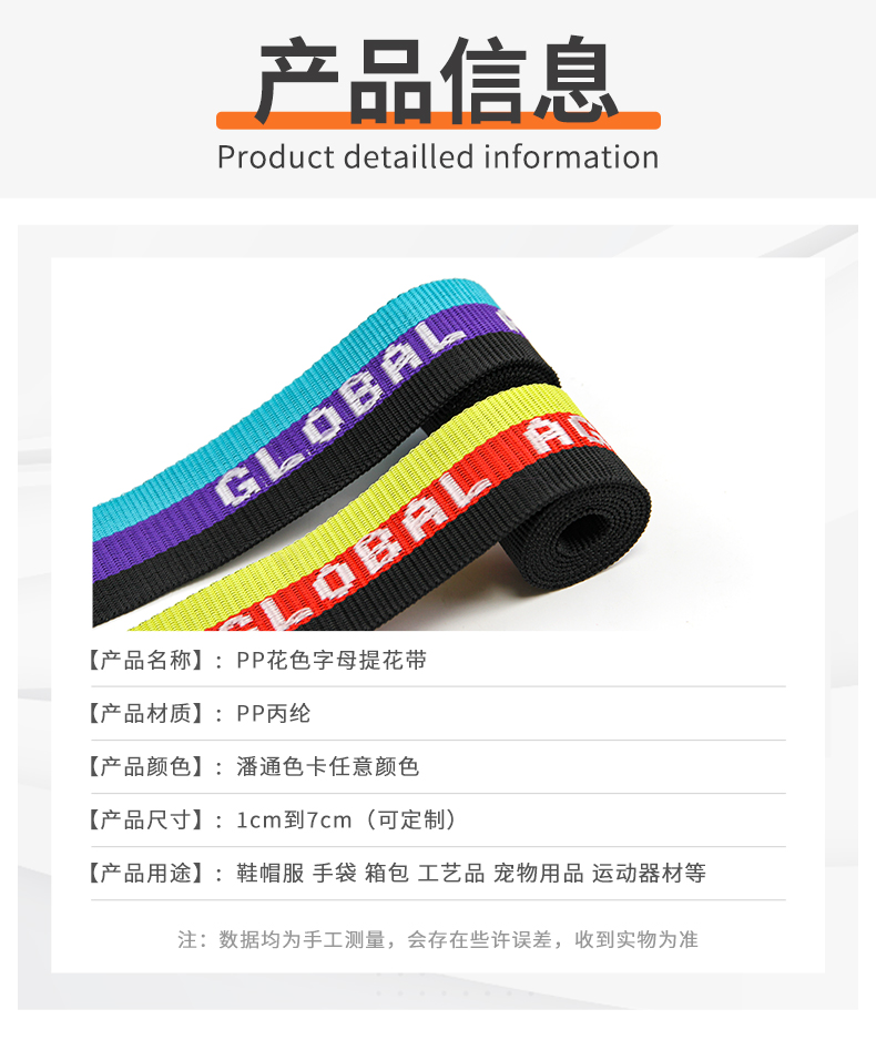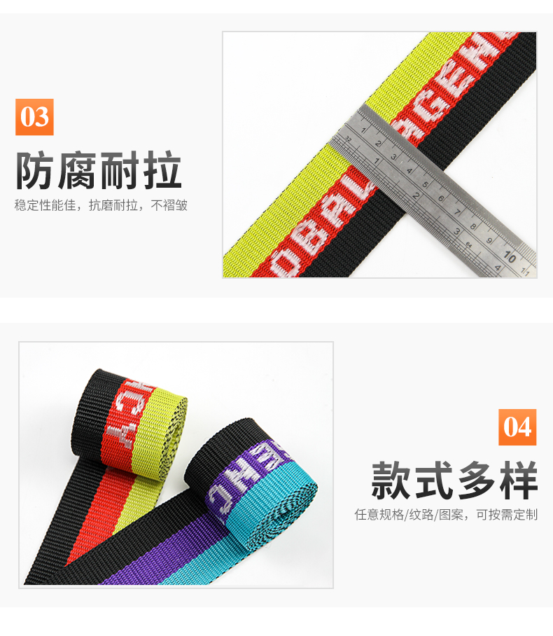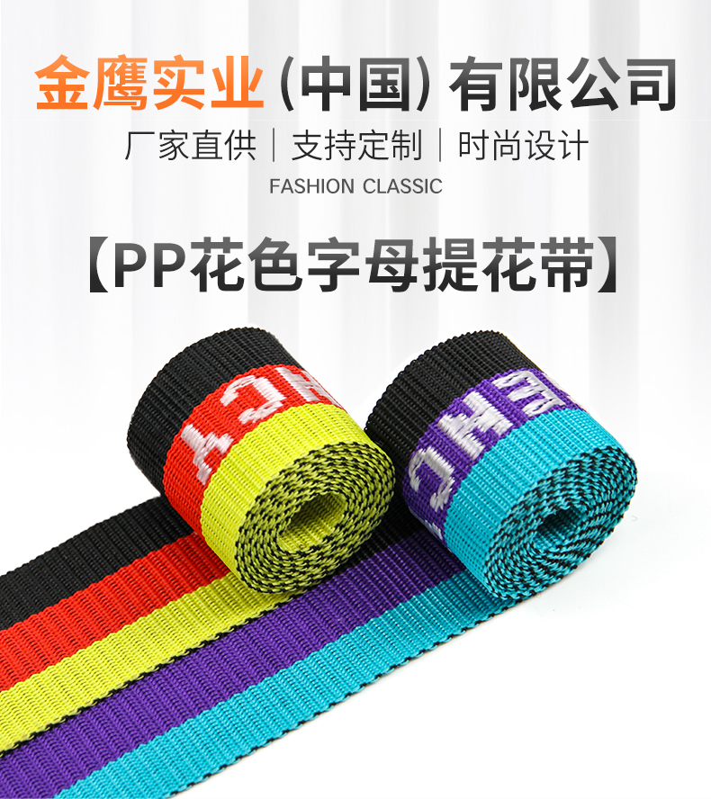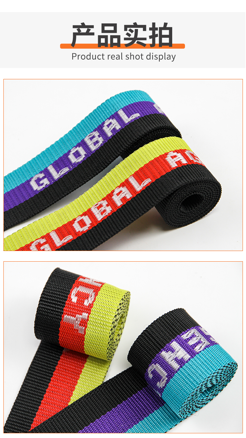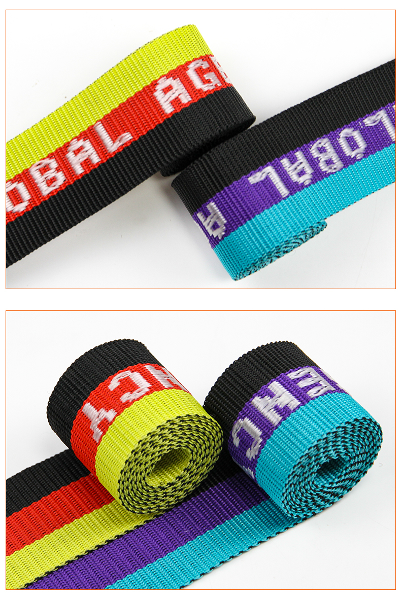 厂家批发4.5-5cm彩色PP提花带 间色字母织带 行李背包手提带肩带