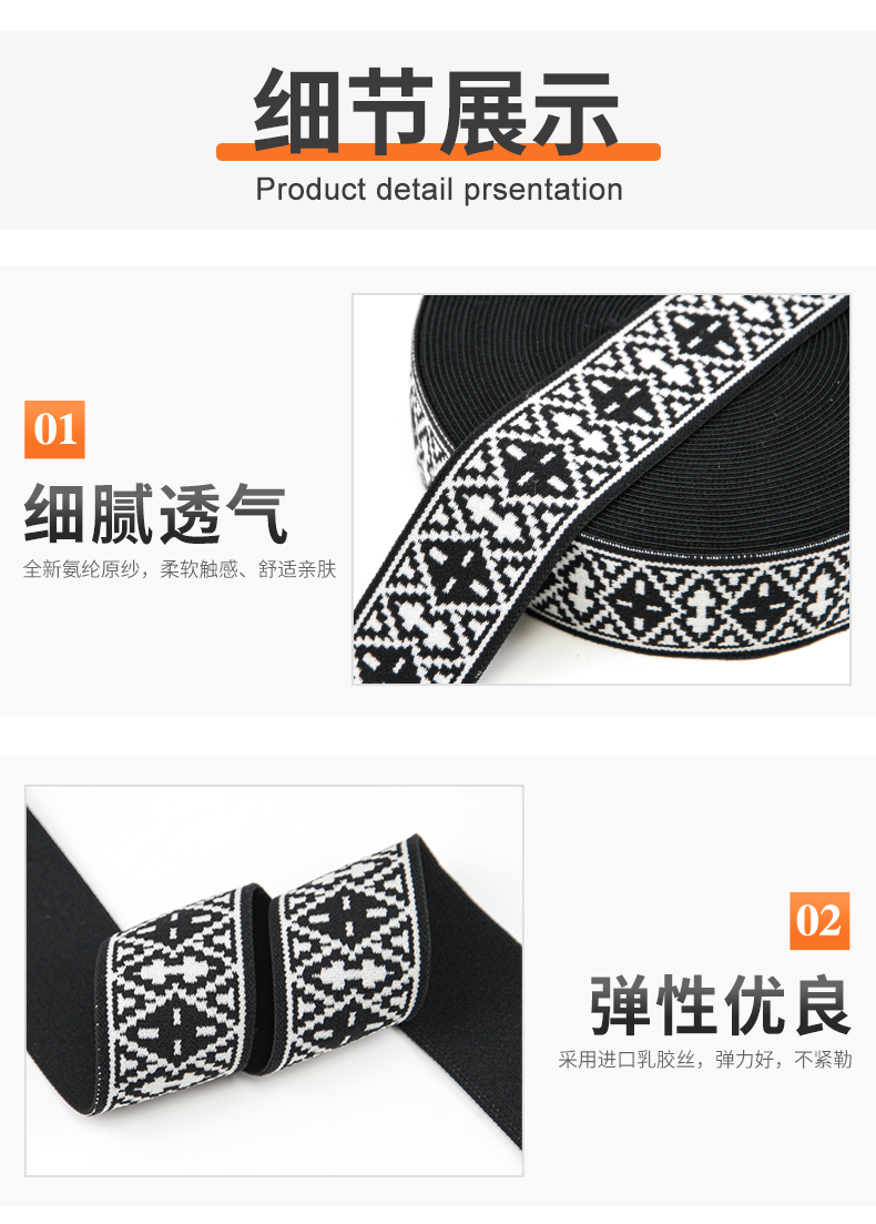 3.5cm高弹涤纶加厚松紧带 字母提花松紧带 内衣裤腰带弹力橡筋带