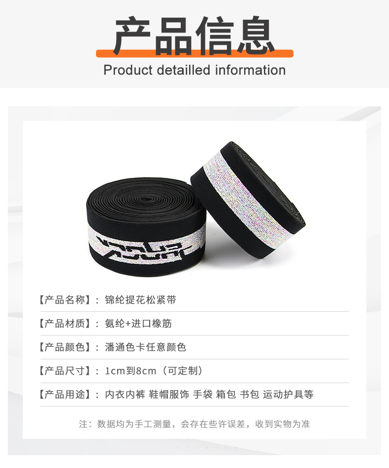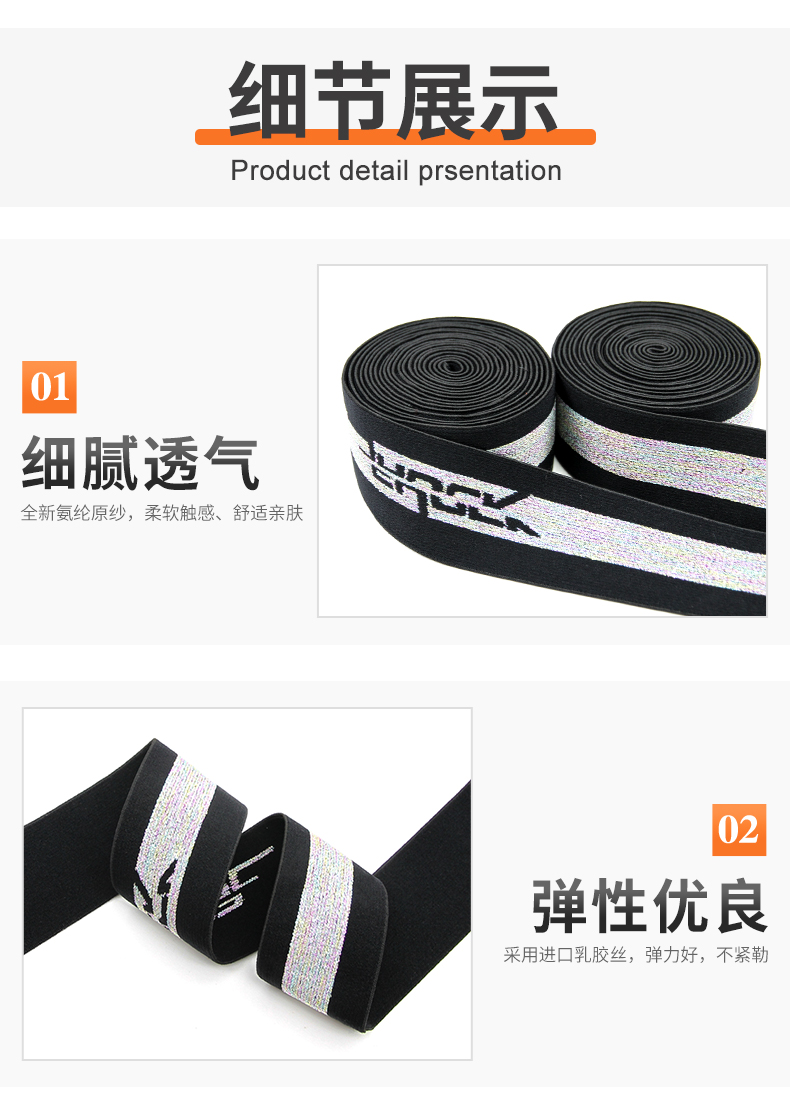 3.8CM氨纶高弹丝松紧带 内衣提花松紧带内裤橡筋腰带 弹力包边带
