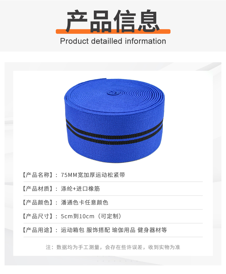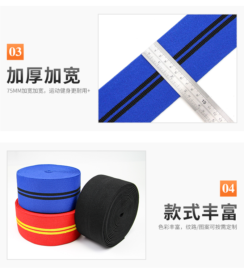 7.5CM加厚涤纶间色松紧带 瑜伽阻力带腰带 健身拉力带深蹲翘臀圈