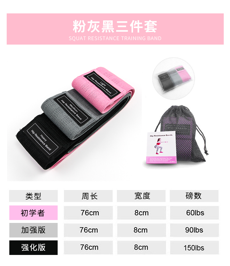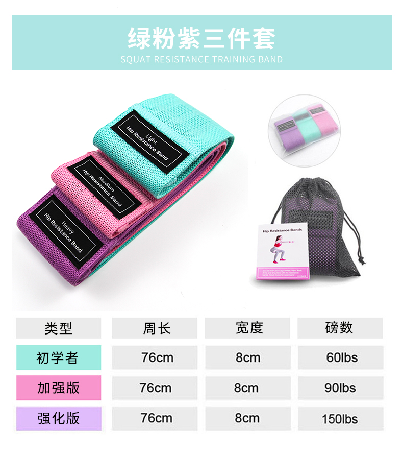 7cm深蹲阻力带 翘臀圈 美体防滑瑜伽拉力带 练肌臂力圈松紧带