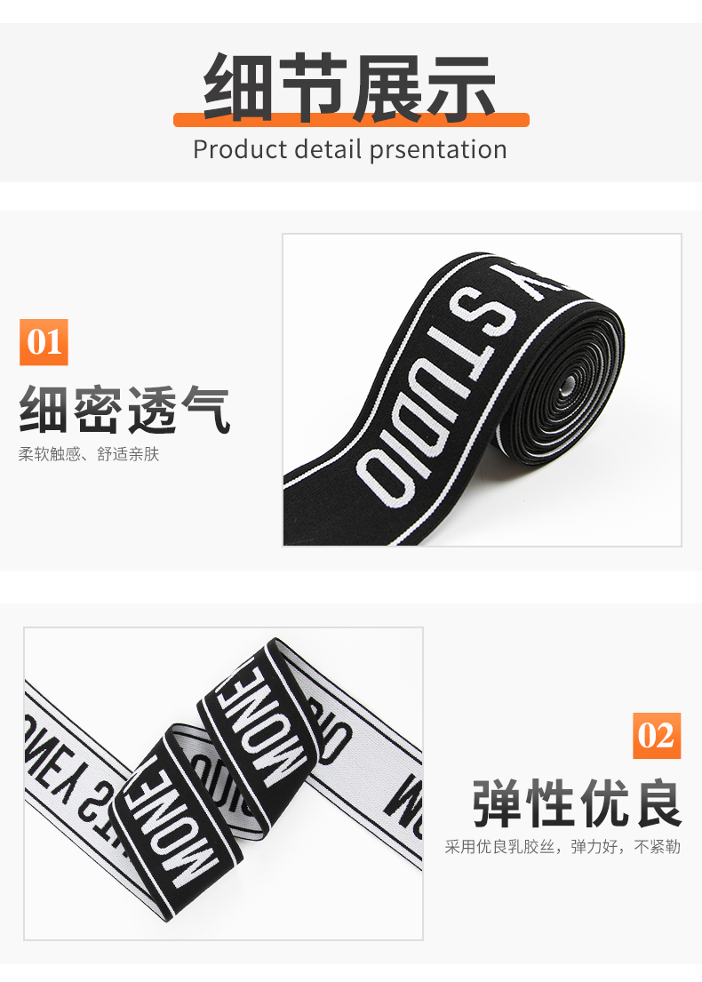 5CM涤纶高弹松紧带 运动内衣提花松紧带 户外头灯带眼罩带橡筋带