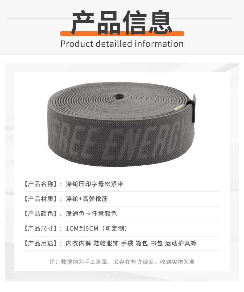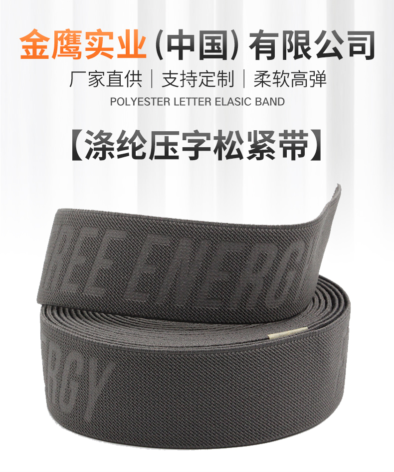 厂家4-5cm涤纶压字松紧带 Logo热印字弹力橡筋 箱包服装包边辅料