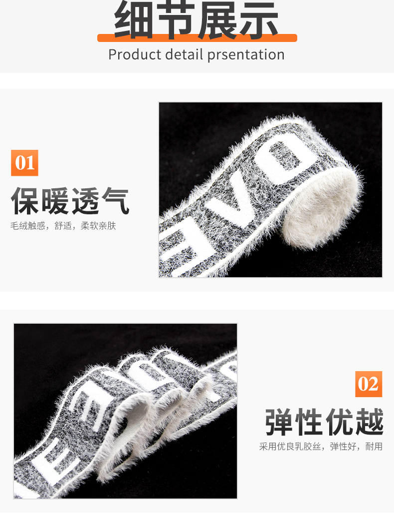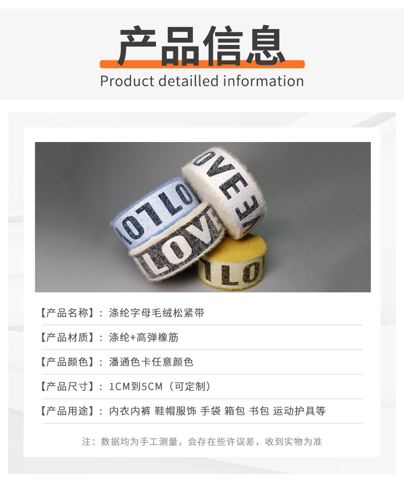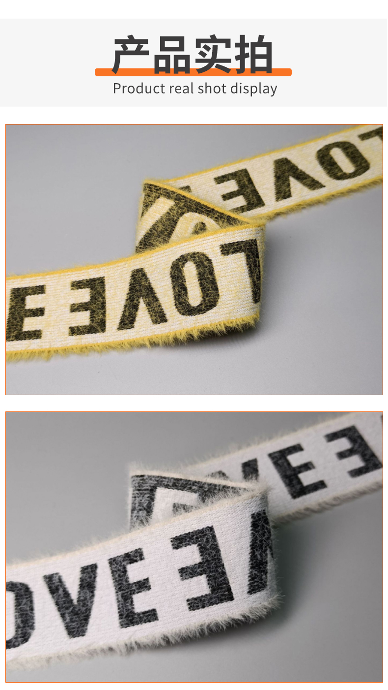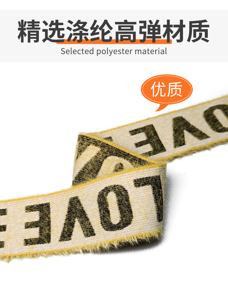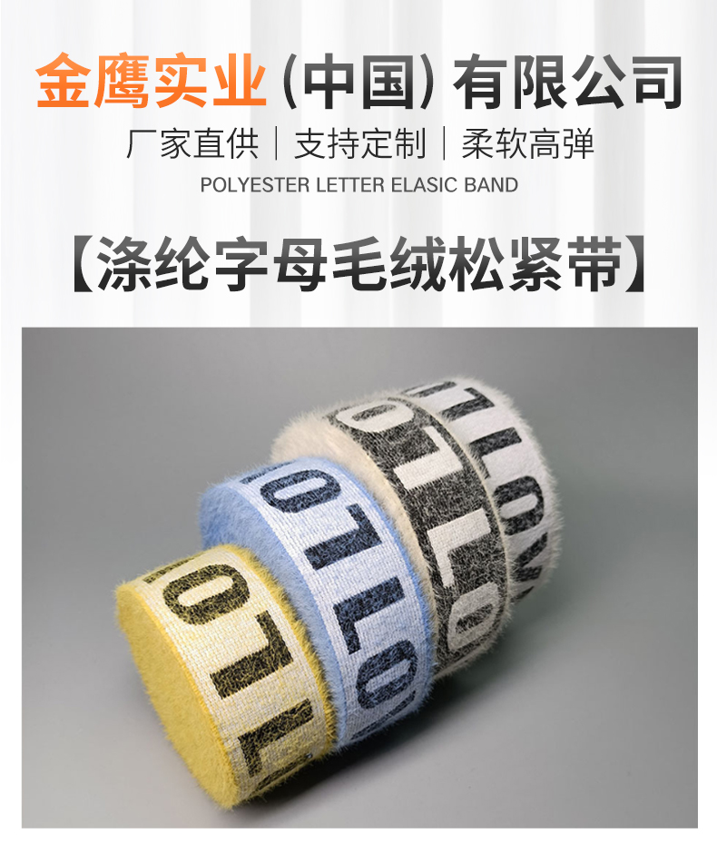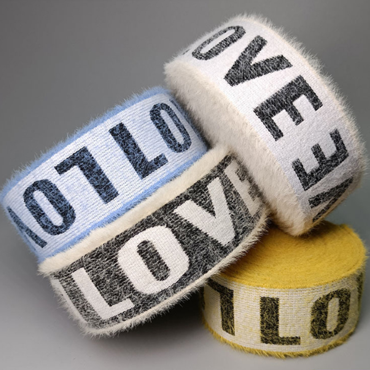 3.8cm仿貂毛字母弹力松紧带 内衣毛绒提花松紧带 运动裤腰橡筋带