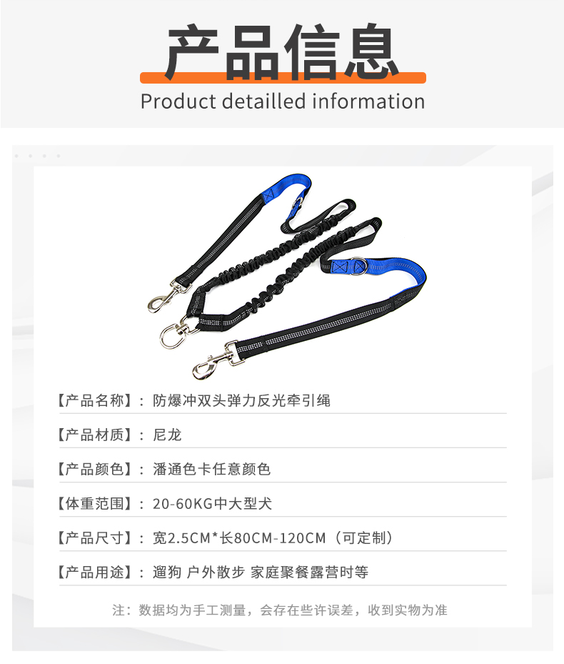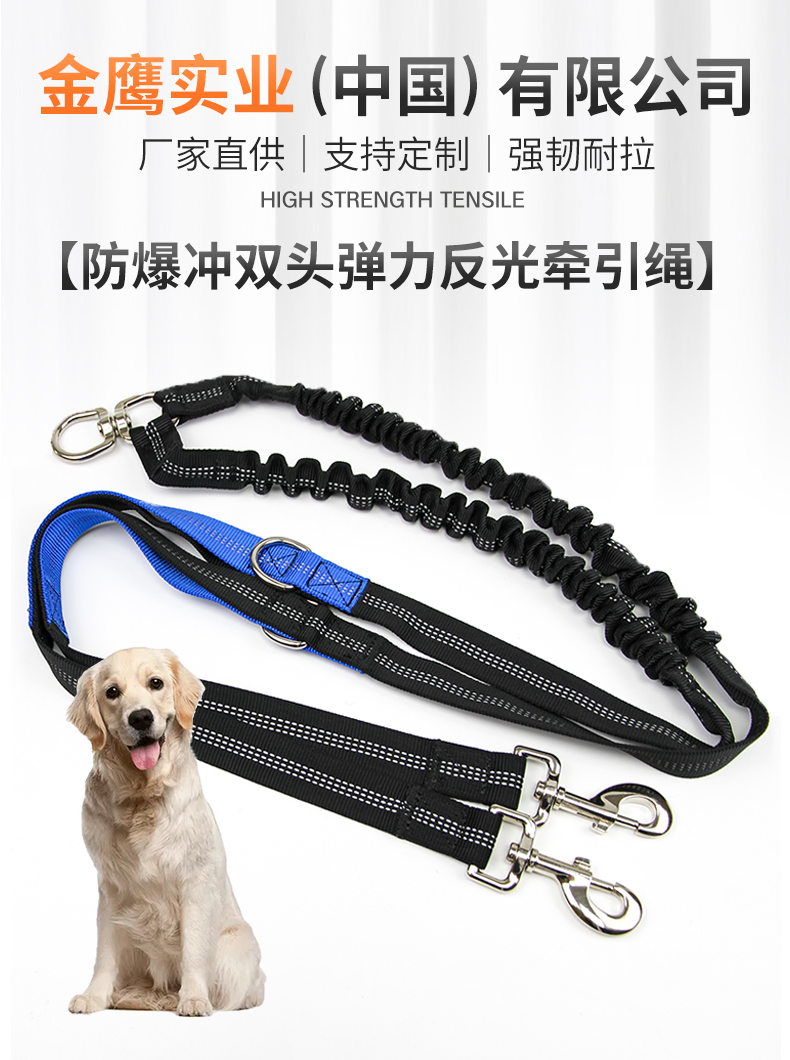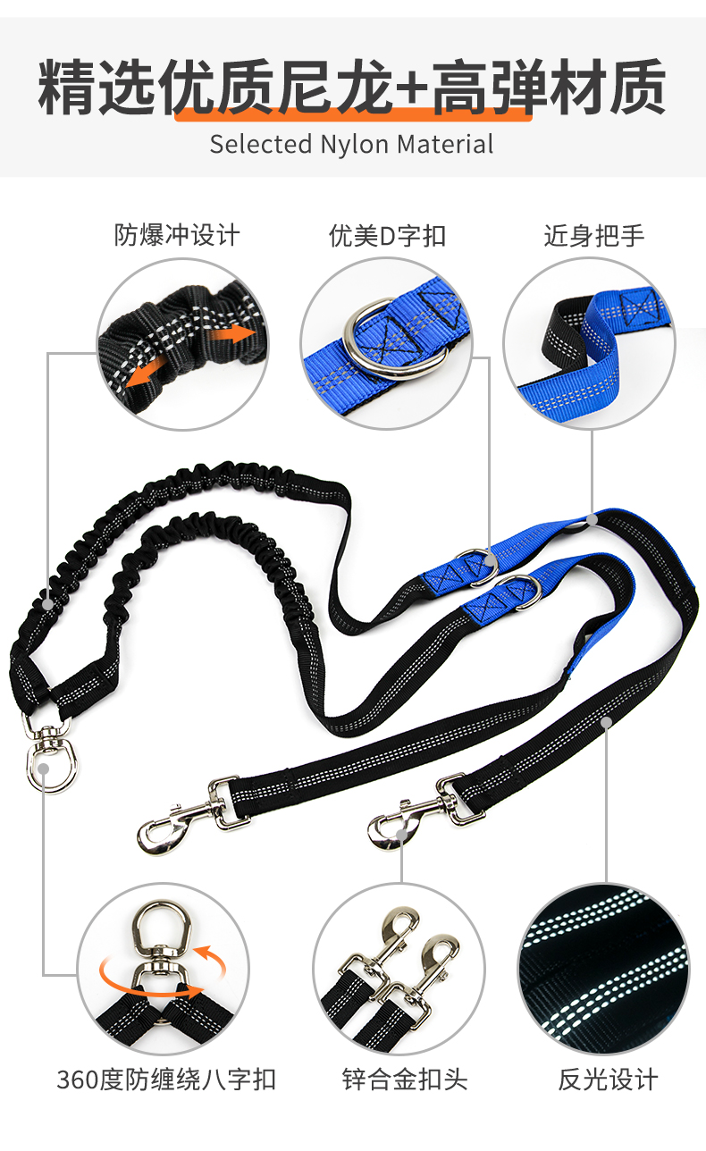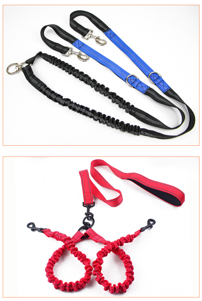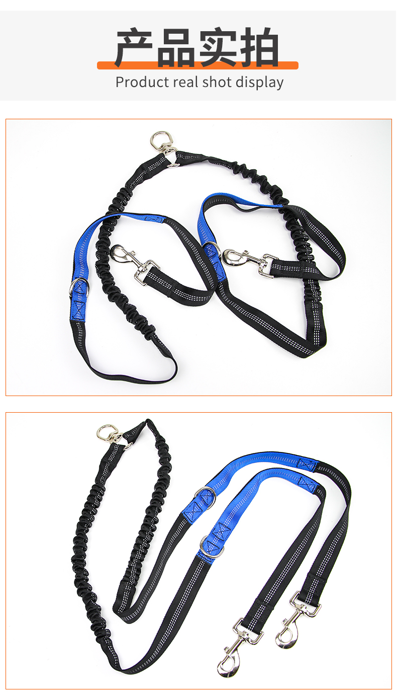 25mm宠物用品双头牵引绳 一拖二可调尼龙拉带反光 可调狗狗拉带