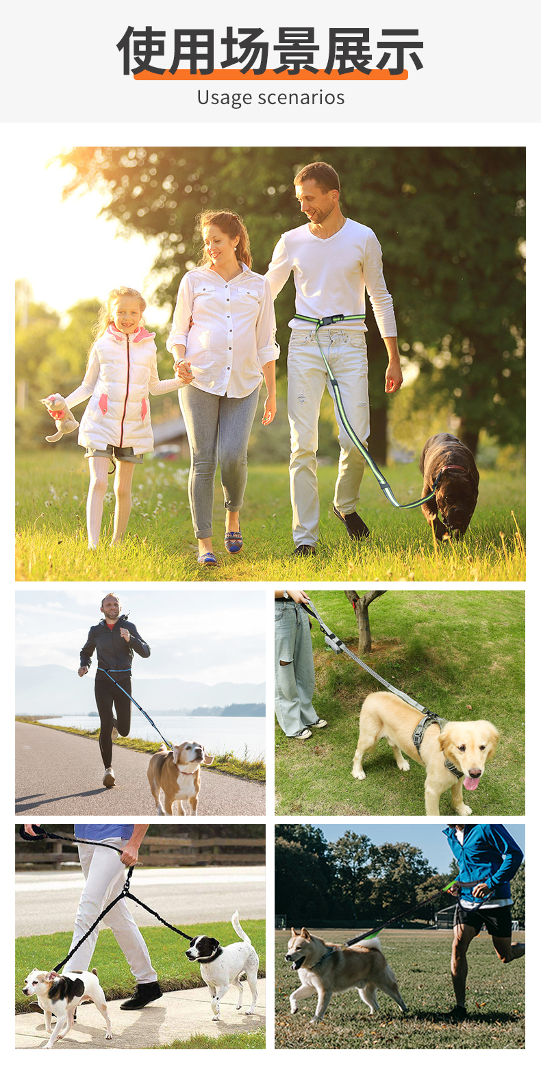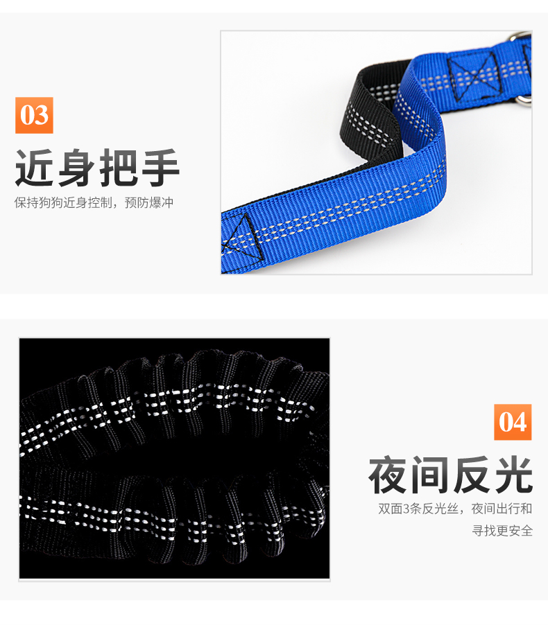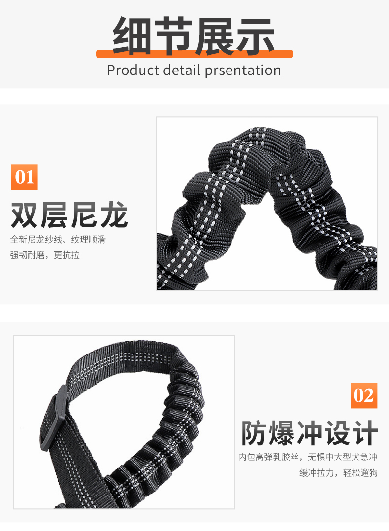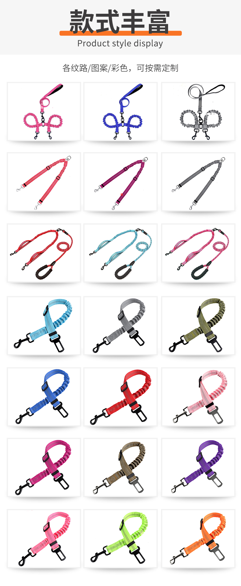 25mm宠物用品双头牵引绳 一拖二可调尼龙拉带反光 可调狗狗拉带